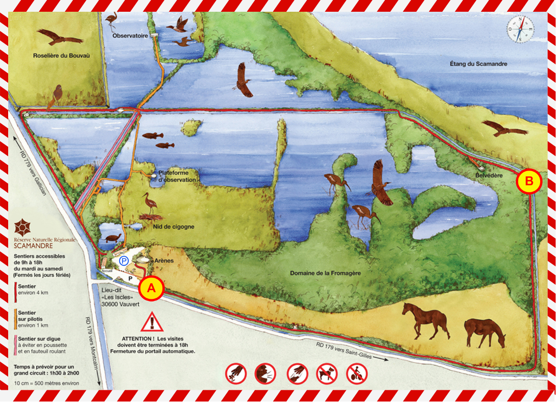 Les principaux secteurs d’observation restent maintenus ouverts (sentier sur pilotis, belvédère, observatoire).